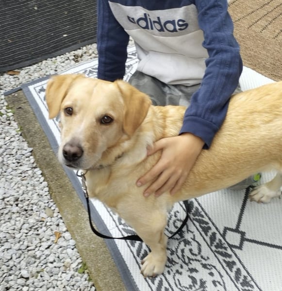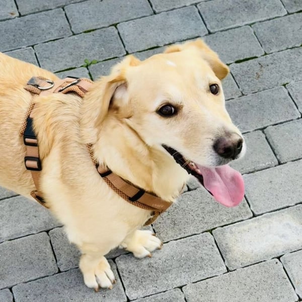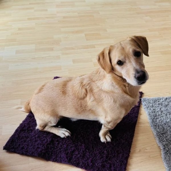 Benni ist fast 6 Jahre alt (20.01.2020), wiegt ca. 20kg und ist 40cm groß, ein kleiner Labrador-Dackel Mix (kurze Beinchen, längeres Körper), mit kurzer Rute geboren.