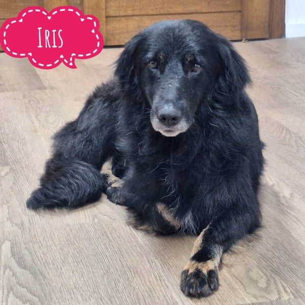 Iris ist ein Mädchen, sie ist laut Tierarztschätzung ca. 6 Jahre alt (geb. 26.09.2019), wiegt etwa 22 kg und ist mittelgroß. Vermutet wird ein Retriever, eventuell auch mit etwas Hovawart.