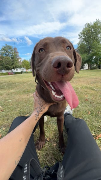 Er ist erst ein Jahr alt und noch sehr verspielt. Er ist ein sehr aktiver Hund und braucht viel Beschäftigung. Er liebt Wasser und ist am liebsten den ganzen Tag nur draußen.