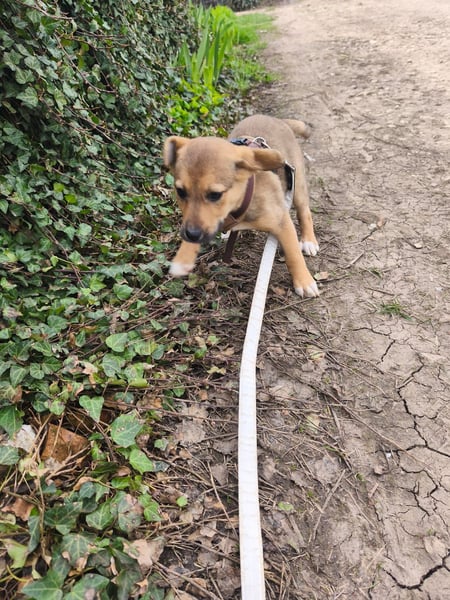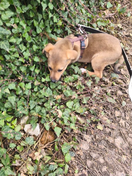 Ryanna ist ein Labrador-Mischlingswelpe von Scarlett - einer Hündin, die ihre Jungen unter schwierigen Bedingungen in Rumänien beschützt und großgezogen hat.