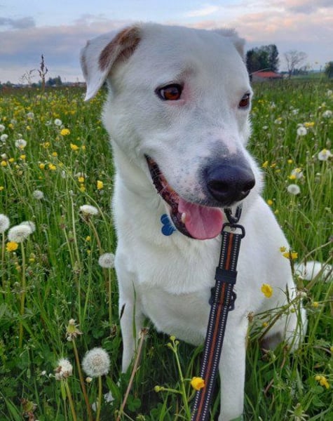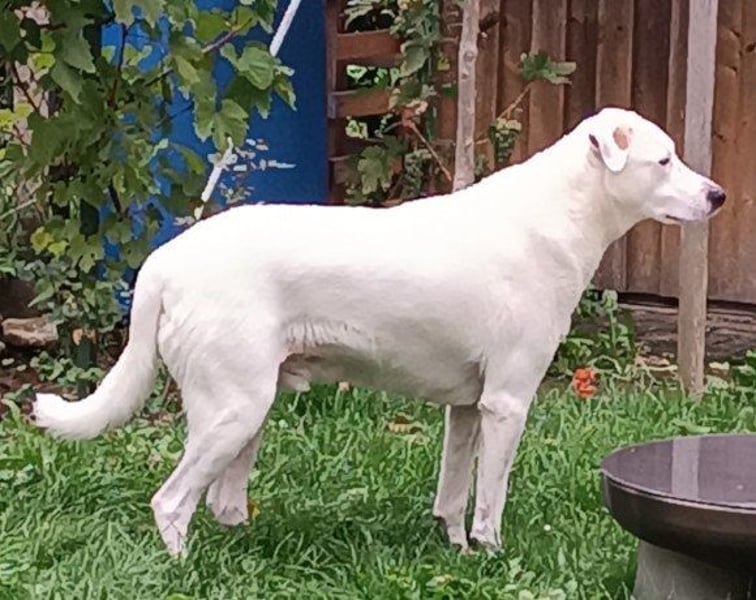 Besonderheiten: Snow ist ein außergewöhnlich freundlicher, ruhiger und sanfter Hund. Er ist Leishmaniose positiv – allerdings ist diese inaktiv.