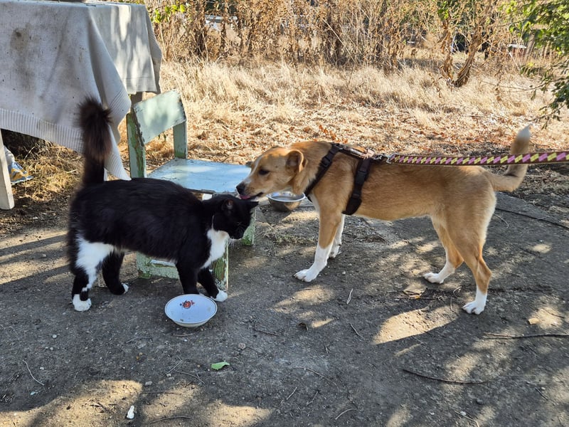 Im Umgang mit anderen Hunden ist Tilda ausgesprochen sozial. Sie lebt problemlos in einer gemischten Hundegruppe und kommt auch mit Katzen gut zurecht. Tilda liebt es, draußen unterwegs zu sein, hat bereits erste Spaziergänge an der Leine gemeistert und sich dabei interessiert, aber nicht überdreht gezeigt.