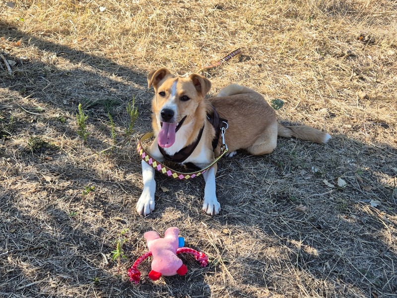 Dort zeigte sich schnell, welches Potenzial in der jungen Hündin steckt: Statt sich zurückzuziehen, begegnet Tilda ihrer neuen Umgebung mit Neugier und Freundlichkeit. Sie ist zugänglich, aufmerksam und den Menschen gegenüber sehr zugewandt. Mit ihrer wachen Art und ihrem feinen Gespür für ihr Gegenüber wird sie von den Helferinnen vor Ort liebevoll als „Rohdiamant“ bezeichnet. Tilda sucht aktiv den Kontakt zu Menschen, orientiert sich rasch an ihren Bezugspersonen und begrüßt Besucher freundlich. Gleichzeitig bringt sie ein sensibles Gespür für neue Situationen mit: In unbekannter Umgebung oder bei viel Trubel kann sie sich zunächst vorsichtig zeigen – nimmt sich einen Moment, um alles einzuordnen, bevor sie sich öffnet.