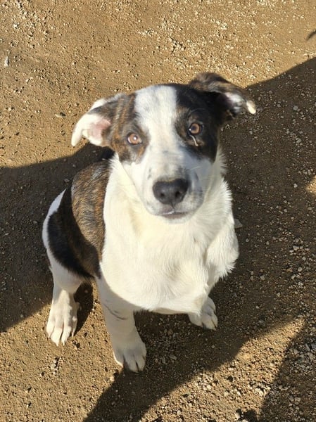 Brad ist einer der Jungs. Er ist schwarz weiß mit einer lustigen Gesichtszeichnung und mit einer Portion Schalk im Nacken