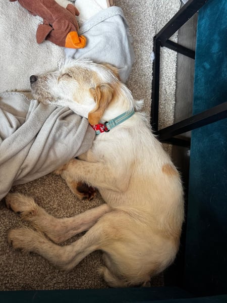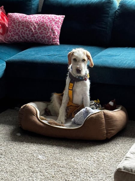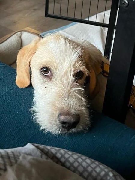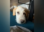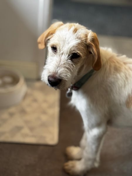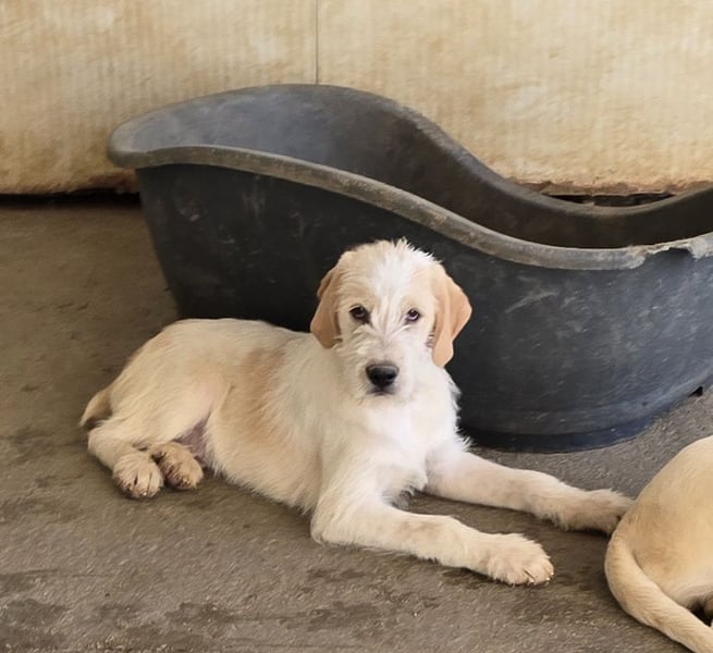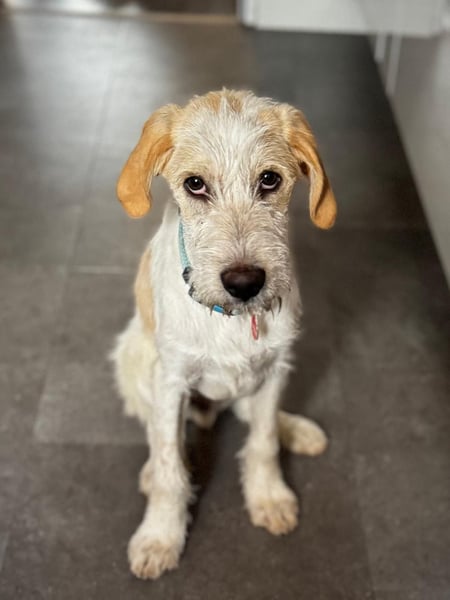 Noe hat ein etwas struppiges Fell und ein lausbubenhaftes Aussehen, aber er ist eher ein ruhiger verschmuster Junghund.