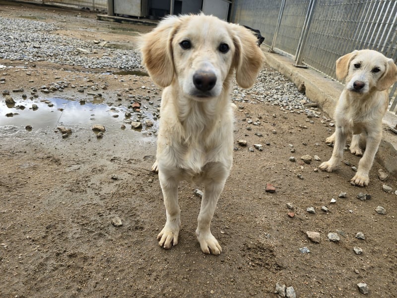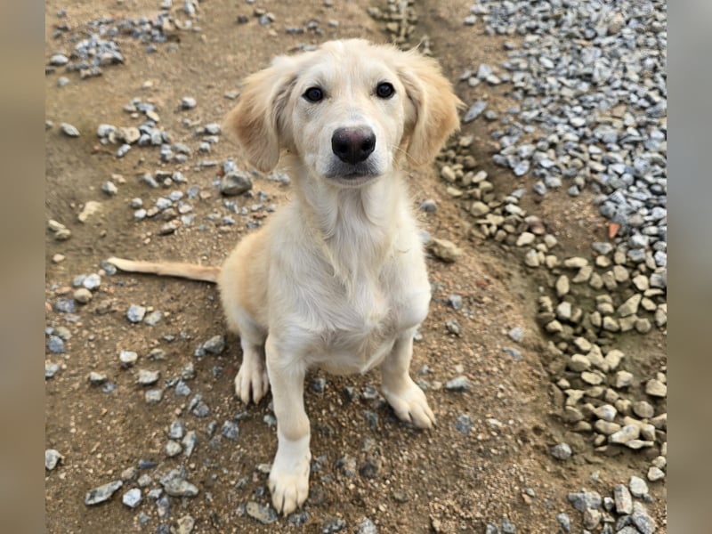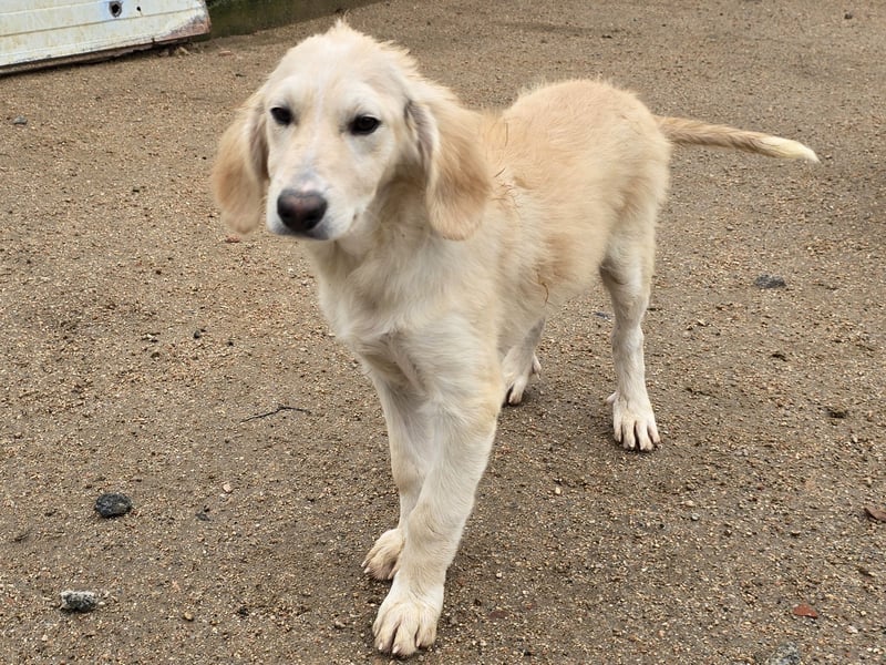 Cameron ist ein Retriever Segugio Mischling. Er ähnelt sehr seiner Schwester Cianbella. Cameron hat ein wenig "Plüschohren". Wir schätzen seine Endgröße auf 50 cm.