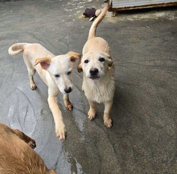 Nun leben sie in einem kleinen Welpengehege und zeigen sich sehr aufgeschlossen.