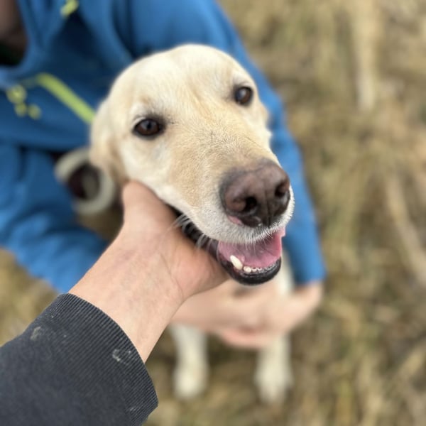 Iggy ist ein Bub, er ist laut Tierarztschätzung ca. 2 Jahre alt (geb. 10.10.2023), wiegt etwa 17 kg und ist rund 50 cm groß. Vermutet wird ein Labrador-Mischling.