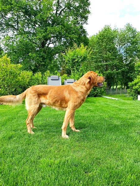 Er wiegt ca. 35 kg und hat eine Schulterhöhe von 62 cm. Er wohnt in einer Familie mit Kindern. Vom Wesen ist er freundlich, neugierig, aufmerksam und wissbegierig. Er ging 2 Jahre zur Hundeschule. Mit anderen Hunden kommt er gut zurecht. Er hat bereits erfolgreich gedeckt.