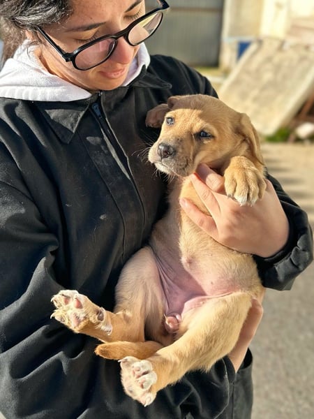Mina und ihre sechs Geschwister kamen am 19. Februar 2026 auf die Welt, in der Obhut eines tierlieben Herrn, der die Mutter wenige Tage zuvor von der Straße gerettet hatte. Da sie stark unterernährt war, hat niemand damit gerechnet, dass sie sieben gesunde Welpen zur Welt bringen würde.