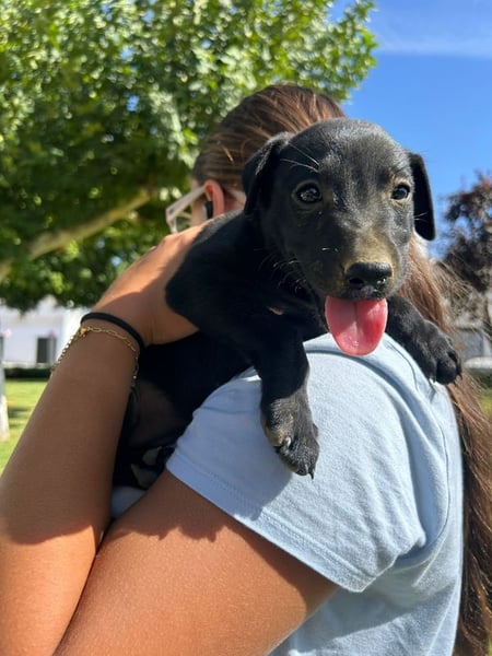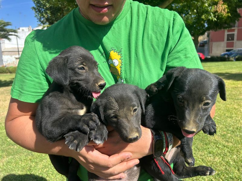 Mati und ihre zwei Schwestern Mimi und Myriam befinden sich in der Obhut unserer Tierschutzpartner des Tierheims Mi Fiel Amigo und warten von hier aus sehnsüchtig auf ein schönes und beständiges „Für-immer-Zuhause“. Die drei Hundemädchen sind Teil eines Wurfes zweier Nachbarschaftshunde, einer Labradorhündin und eines Bretón Español Rüden (Fotos der Elterntiere sehen Sie unten). Der Besitzer des Rüden erklärte sich bereit, alle Hunde zu nehmen, die der Rasse des Rüden ähnelten und so blieben die drei pechschwarzen jungen Ladys Typ Labrador übrig. Freiwillige Helfer kümmerten sich um das quirlige Trio, bis alle geimpft waren und nun toben sie durchs Tierheim in Erwartung weiterer Abenteuer.