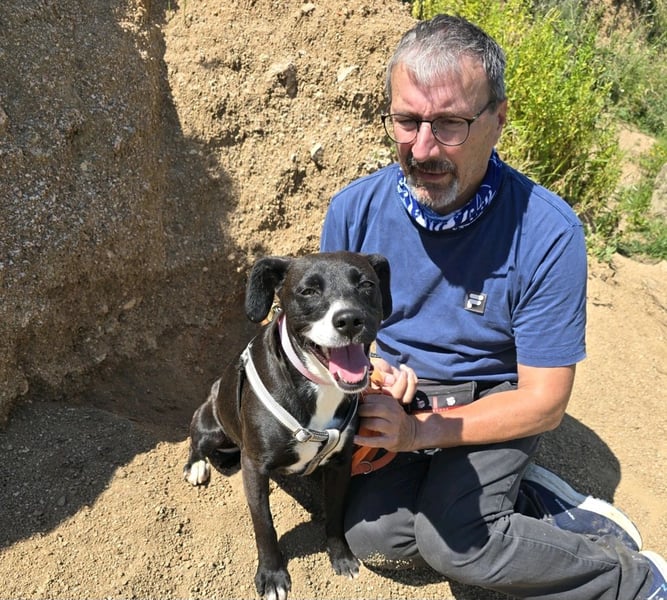 Brenda ist eine richtige Knutschkugel. Ihre Freude ist riesengroß, wenn man mit ihr spielt oder kuschelt. Da wackelt der ganze Körper. Sie lebt problemlos mit Rüden und Hündinnen zusammen.