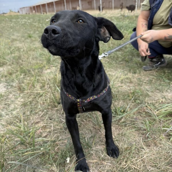 Bea ist ein Mädchen, sie ist laut Tierarztschätzung ca. 1,5 Jahre alt (geb. 09.04.2024), wiegt 21,5 kg und ist 51 cm groß. Vermutet wird ein Labrador-Mischling, eventuell mit Terrier-Anteilen.