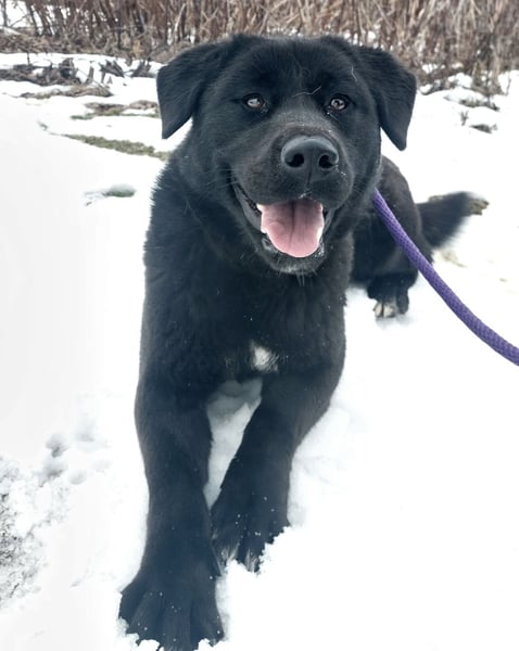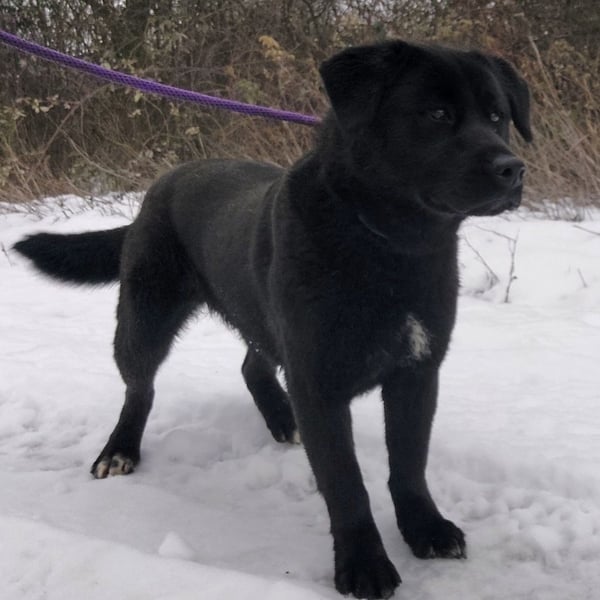 Honda ist eine eher niedrige, aber sehr kräftige und kompakte Hündin – stabil im Körperbau, mit einer starken Präsenz. Auch wenn ihr Gesicht noch etwas Welpenhaftes hat, ist sie eindeutig eine erwachsene Hündin.