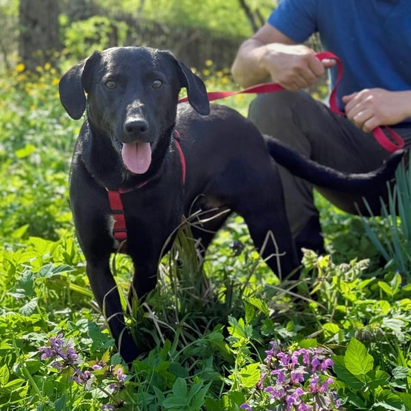 Ravi ist ein Bub, laut Tierarztschätzung ca. 1,5 Jahre alt (geb. 21.08.2024), wiegt ca. 18kg und ist etwa 50cm groß. Vermutet wird ein Labrador–Bracke Mischling.