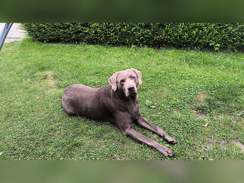 Unser hübscher silberfarbener Labrador Retriever-Rüde Chester steht gesunden und geeigneten Hündinnen als Deckrüde zur Verfügung.