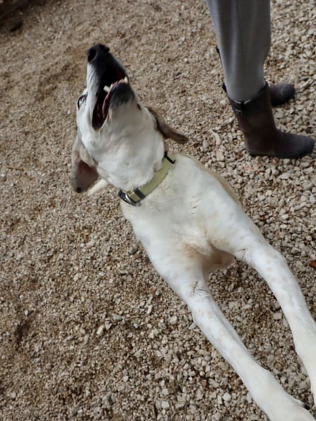 Sie ist total fit, lebensfroh und verspielt. Am meisten liebt sie es, auf Spaziergänge mitgenommen zu werden. Man merkt, wie viel Quatsch sie noch im Kopf hat, wenn man mit ihr anfängt zu spielen.