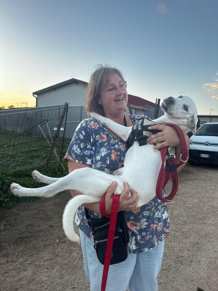 Bice ist wie ihre Geschwister ein aufgeweckter Junghund. Sie freut sich über jede Aufmerksamkeit, spielt im Hof mit ihren Artgenossen, lässt sich streicheln und knuddeln und hat noch eine Menge Unsinn im Kopf.