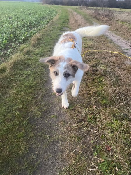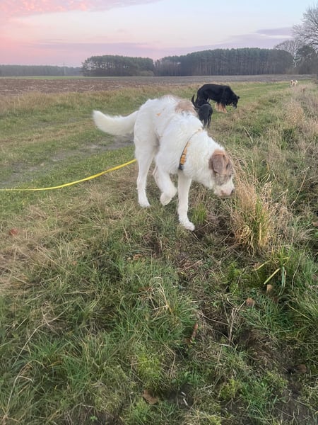 Er lebt in einem gemischten Rudel auf der Pflegestelle und hat sich sofort dort intergriert.