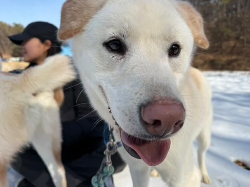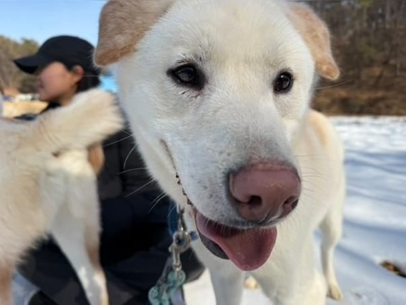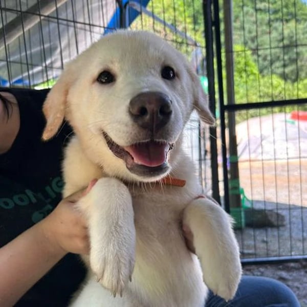 Dürfen wir vorstellen Daon aus der „Hangeul“-Geschwistergruppe! Daon kam gemeinsam mit seinen vier Geschwistern als winziger Welpe ins Tierheim. Ihre Namen stehen für die ersten fünf Konsonanten des koreanischen Alphabets. Die fünf sind Labrador-Jindo-Mixe und haben sich seit ihrer Ankunft zu wunderbar freundlichen, ausgeglichenen Junghunden entwickelt. Ausgewachsen werden sie voraussichtlich etwa 17–20 kg wiegen.