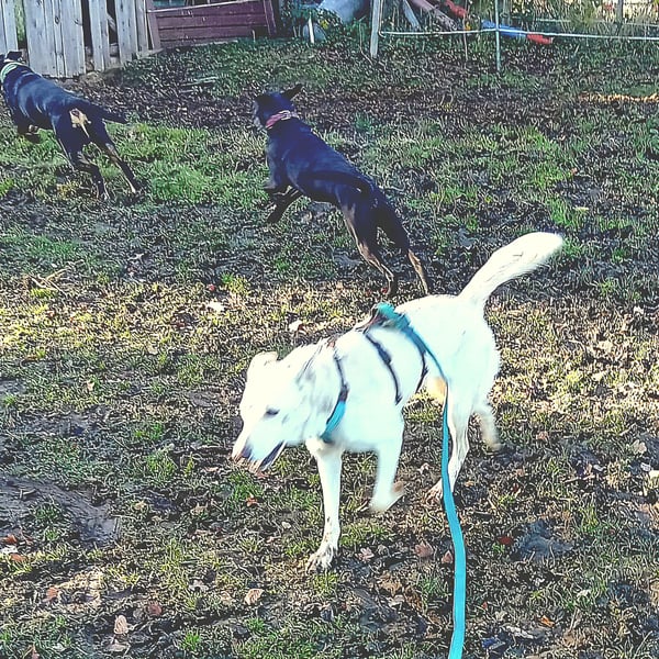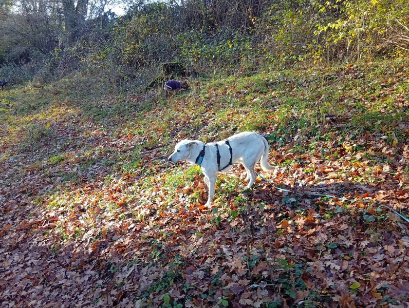 Weil Diva lange auf einem Balkon leben musste, konnte sie nie richtig lernen, wie Hunde miteinander kommunizieren. Sie meint es freundlich, geht aber manchmal recht direkt auf Artgenossen zu, was nicht jeder Hund sofort versteht. Das ist kein aggressives Verhalten, sondern eher Unsicherheit und Unwissenheit. Mit souveräner Anleitung funktioniert das Zusammenleben gut, daher sollten Hundekontakte anfangs gesteuert werden.