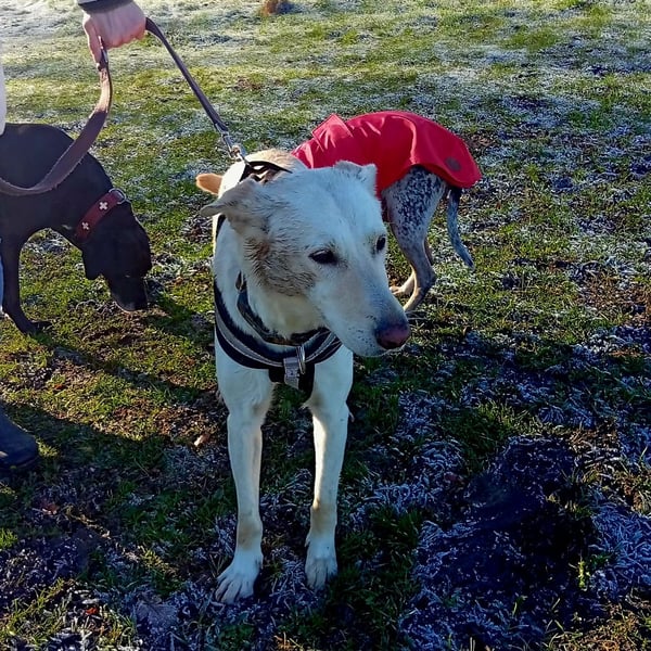 Diva hat den Sprung geschafft und ist in Deutschland auf einer Pflegestelle gelandet; hier lebt sie mit mehreren Hunden zusammen. Von ihrer schweren Vergangenheit ist heute äußerlich kaum noch etwas zu sehen, doch sie prägt, wer Diva heute ist: eine lebensfrohe und unglaublich menschenbezogene Hündin.