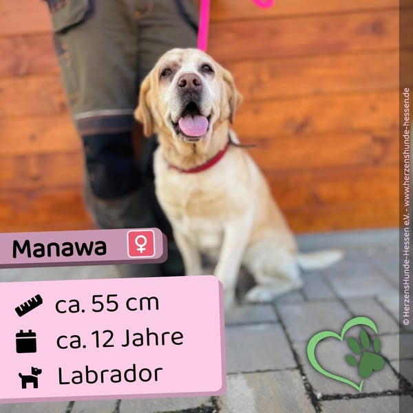 Manawa ist eine außergewöhnlich liebe, verschmuste und rundum bezaubernde Labrador-Mix-Hündin, die aus schlechter Haltung stammt und bisher leider nicht die Fürsorge bekommen hat, die sie verdient. Sie ist eine eher kleine Labrador-Dame mit 28 kg – die perfekte Größe für nahezu jede Familie. Ihr Wesen ist fröhlich, offen und sozial.