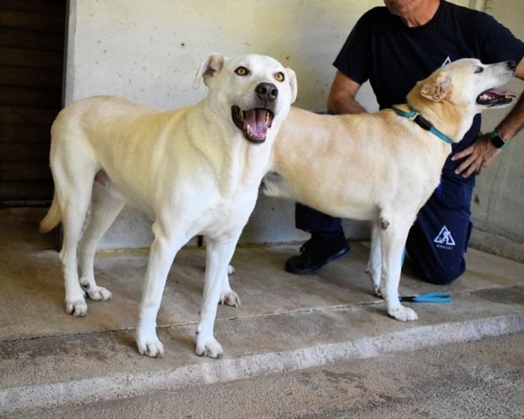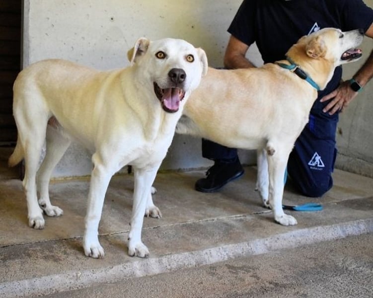 Und falls Sie sich fragen: Ja, ich würde schon gerne mit Daffyd bleiben. Er ist mutig, ich bin schüchtern. Er wedelt, ich zögere. Aber zusammen sind wir einfach… wir. So eine Art Ernie & Bert mit Schlappohren und Hundeblick. Wenn Sie also ein Herz für stille Helden haben… Wenn Sie Geduld haben, Humor – und vielleicht ein gemütliches Sofa…dann sagen Sie doch einfach: „Luken, alles gut. Komm, du bist jetzt zu Hause.“