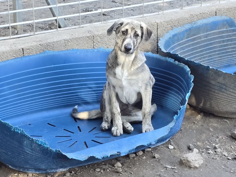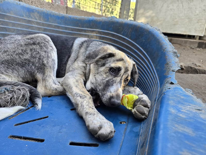 Cheyenne wurde mit ihren sieben Geschwistern im Nirgendwo ausgesetzt. Sie waren noch so klein, dass sie alleine nicht lebensfähig waren. Zum Glück fand sich eine Pflegestelle, die die Kleinen mit der Flasche aufzog. Mit drei Monaten mussten sie nun die "warme Stube" verlassen und ins Tierheim umziehen. Es sind zwei Jungs und sechs Mädchen.