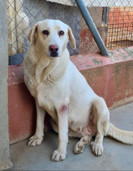 Diva ist eine sehr liebe, ausgeglichene Hündin, die sich seit Oktober 2025 in unserem Partnertierheim „Hogar de Asis“ befindet und von hier aus auf ein Zuhause bei Freunden von Kuscheleisbären wartet. So großrahmig ihr Körper ist, so groß ist auch mindestens ihr Herz. Wir wissen zwar nicht viel über Divas Herkunft, was wir wissen, ist, dass sie ein wahrer Goldschatz ist.