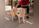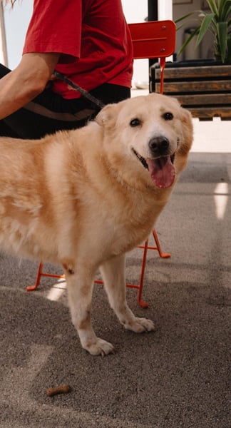 Capuccina ist der Hund, bei dem man automatisch anfängt zu lächeln – selbst, wenn man vorher schlechte Laune hatte. Sie hat diesen weichen, freundlichen Blick, der einen direkt umarmt, dazu ein gold-cremefarbenes Fell, das aussieht, als sei es in einer Mischung aus Sonnenschein, Cappuccino und Wattewölkchen gewaschen worden. Man sieht sie – und weiß sofort: Das ist kein Hund, das ist ein Wärmflaschen-Herz mit Pfoten.