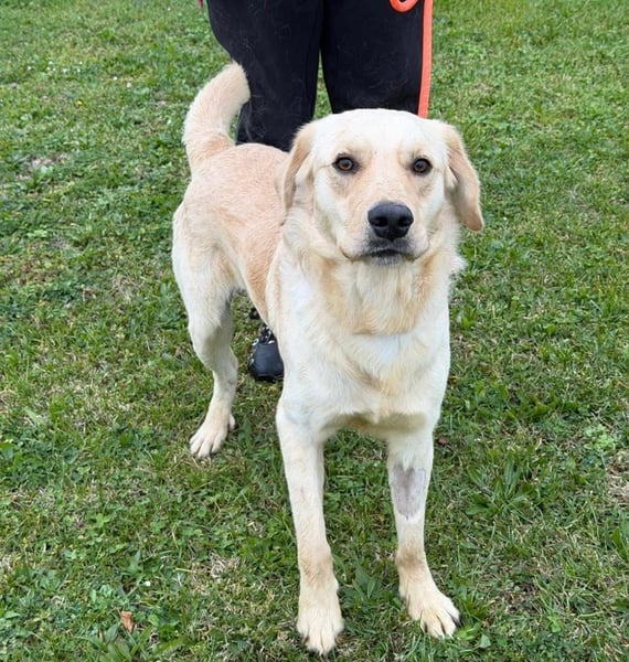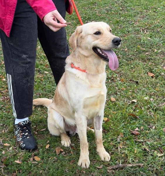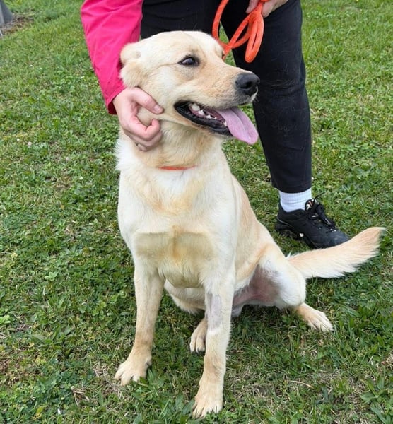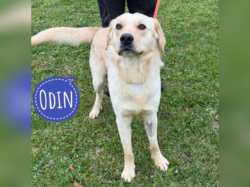 Odin ist ein Rüde, laut Tierarztschätzung ca. 1 Jahr alt (geb. 25.08.2024), wiegt 26 kg und ist 55 cm groß. Vermutet wird ein Labrador-Mischling.