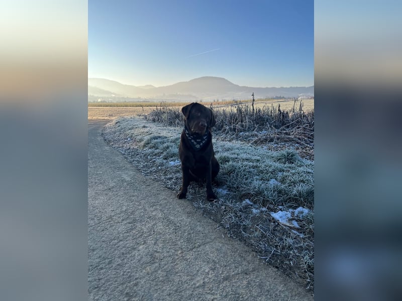 Unser reinrassiger Labrador Rüde Pluto in dunklem Schokobraun ist ein charmanter junger Mann mit einem traumhaften Charakter. Er ist sehr gelehrig, gut erzogen und liebt natürlich das Wasser. Auch mit Katzen und Kindern versteht er sich prächtig und durch und durch ein Familienhund, der einfach an allem Spaß hat.