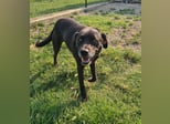 Mit den anderen Hunden im Rudel ist Fietje absolut verträglich und flitzt gern mit ihnen über die Wiesen. Im Sommer liebt er, labradortypisch auch das Wasser.