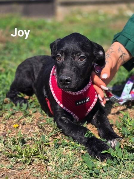 Joy wurde zusammen mit ihrer Schwester in den Feldern ausgesetzt gefunden und kam ins "Babyland" des kroatischen Tierheims in Beli Manastir. Aktuell lebt sie in einer Pflegefamilie vor Ort, gemeinsam mit anderen Hunden, und fühlt sich dort sehr wohl.