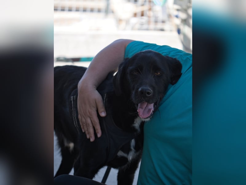 Dibala ist ein ganz besonderer Hund. Einer von denen, die man nicht übersehen kann – nicht nur wegen seines wunderschönen, weichen schwarzen Fells, das auch an einen Labrador erinnert, sondern vor allem wegen seiner unfassbaren Ausstrahlung. In ihm liegt eine tiefe Ruhe, eine Gelassenheit, die berührt. Er ist wie ein Fels in der Brandung – still, verlässlich, voller Wärme.