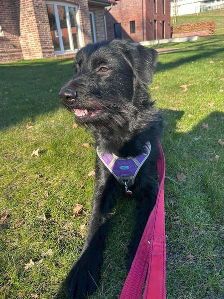 Elly ist eine 2,5 Jahre junge Labrador-Schnauzer-Mischlingshündin. Sie ist eine sehr aktive, lernwillige und sensible Hündin, die sowohl körperlich als auch geistig ausgelastet werden möchte.