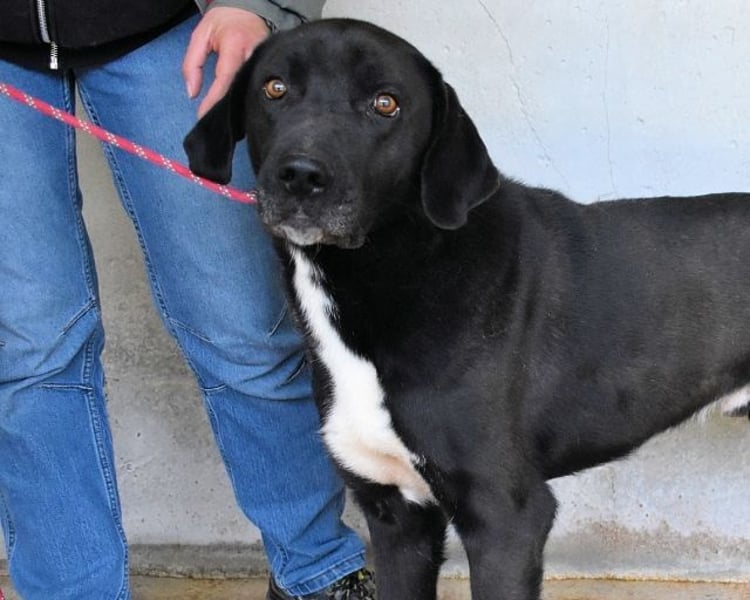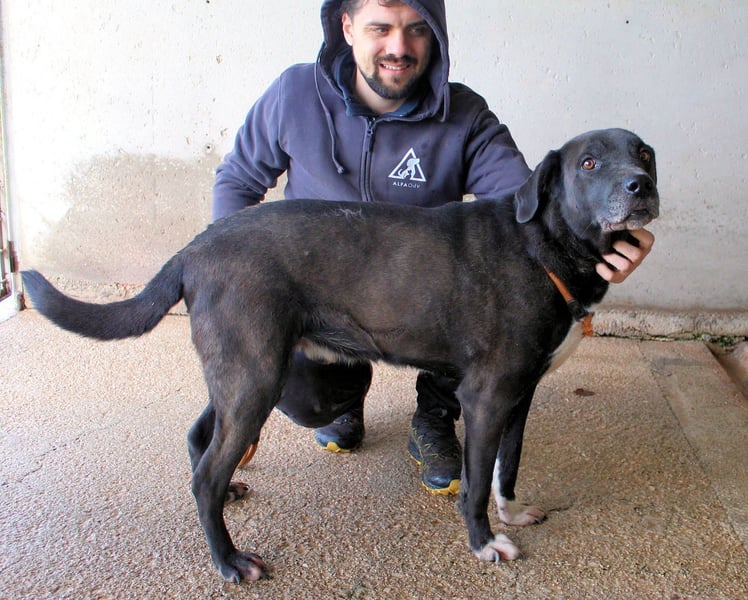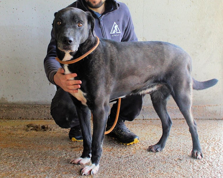 Ich bin ein fünfjähriger imposanter Hundemann, ein Labrador-Mischling der größeren Sorte und hause seit Mitte April 2023 im schrecklichen Hundelager, wo es nichts gibt, außer viel zu viele verzweifelte Hunde. Ich kam nicht auf eigenen Wunsch hierher und leider kann ich nichts dafür tun, mich zu befreien - außer mich von der besten Seite zu zeigen, wenn die Tierschützer mit den Fotoapparaten kurz zu Besuch kommen. Sie bezeichnen mich als sehr verträglich und sagen, dass ich ihnen keinerlei Zeichen von Aggression gezeigt hätte, aber dass ich angespannt und bekümmert wirke. Wundert Euch das? Ich bin auf sie mit erhobener Rute und bellend zugegangen. Dann habe ich sie ganz ruhig abgeschnüffelt und mich beruhigt, aber auf Wachposten bin ich eigentlich immer, jedenfalls im Riesenlager. Davor hatte ich vier Lebensjahre und kann Euch nicht sagen, wo und bei wem... außer dass ich dort das manierliche Leinelaufen gelernt haben muss. Ich mag es nicht so besonders, berührt zu werden und springe gern hoch. Wahrscheinlich ahnt Ihr schon, was das bedeutet: eine gute Hundeschule. Zum Glück bin ich noch im lernwilligen Alter und alles Neue ist spannender als die Eintönigkeit, der Stress und das Dauergeheul im Lager. Annetta ist mit mir in einer Box, also wäre ein bereits vorhandener netter Hund für mich kein Problem, sondern eine Hilfe bei der Eingewöhnung.