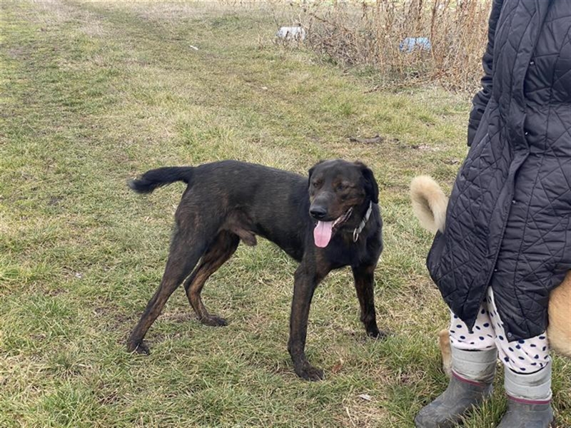 Inzwischen hat er gelernt, an der Leine zu laufen und zeigt sich im Verhalten mit den Menschen freundlich und lieb.