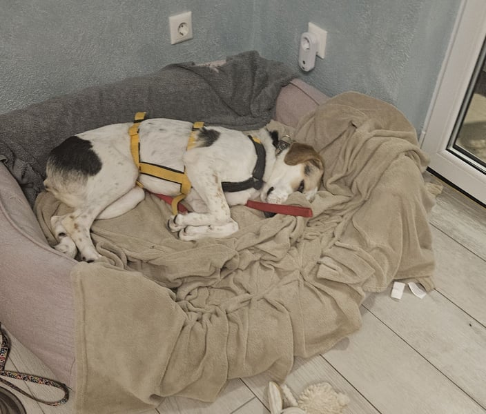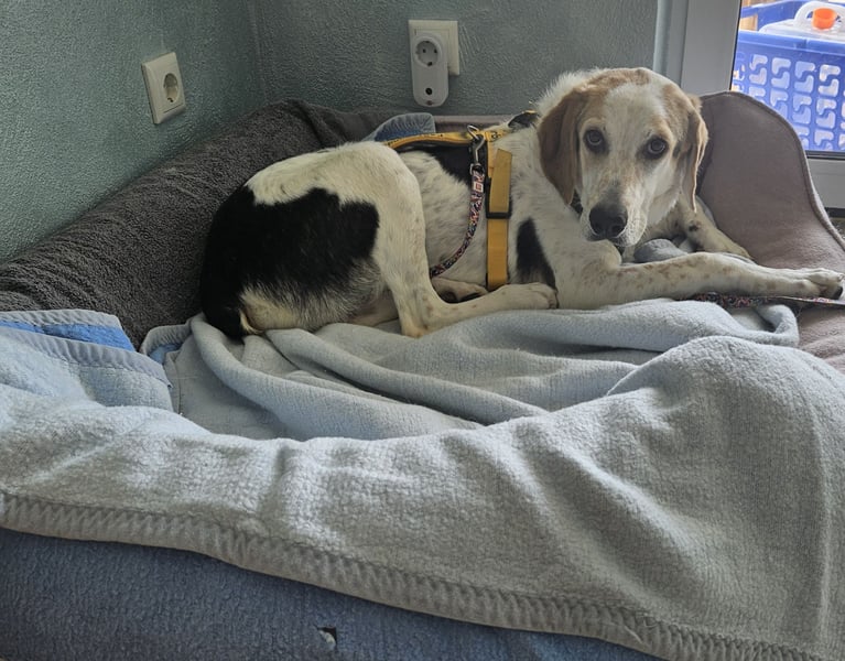 Positiv ist zu erwähnen, dass Anouk neugierig ist, alles genau beobachtet, besonders schaut, was die anderen Hunde machen. Das hat dazu geführt, dass sie nach 10 Tagen allein bleiben kann und stubenrein ist. Sie lässt sich nun streicheln und bleibt dabei auch stehen, sie kann es aber noch nicht genießen.
