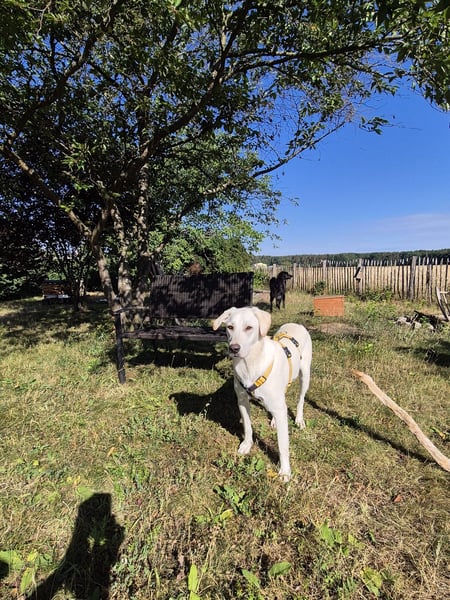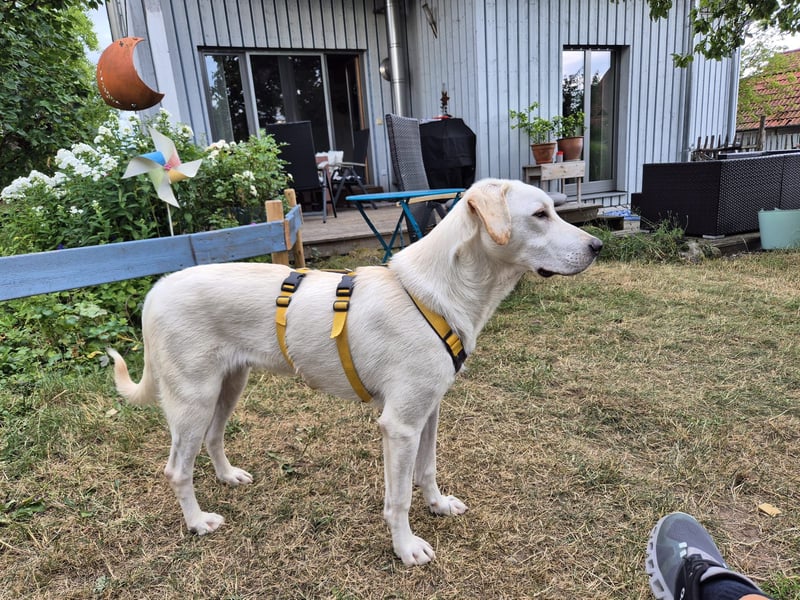 Der aufgeweckte Rüde geht schon gut an der Leine, ist stubenrein, verträglich mit Artgenossen und zeigt sich allen Menschen gegenüber freundlich. Er fährt im Auto mit, schläft nachts durch und steckt mit seiner Lebensfreude an.