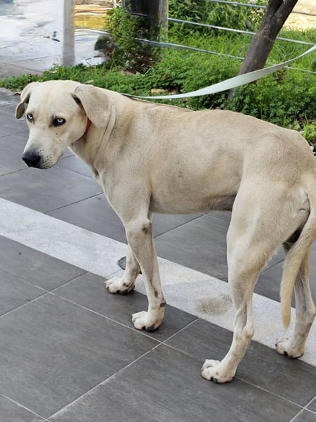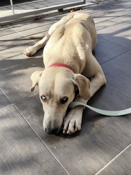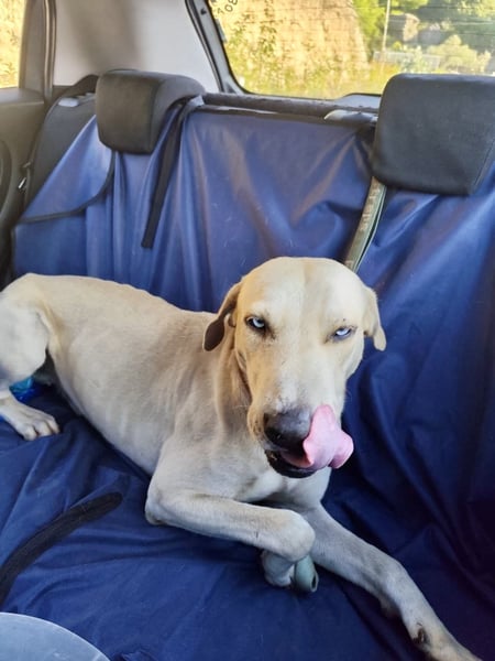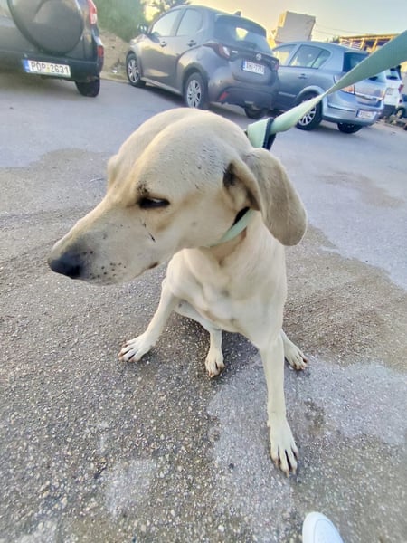 Der Schatz wurde verletzt in einem Dorf auf Rhodos gefunden. Er wurde untersucht und es geht ihm gut. Es wurde eine leichte Fehlstellung am Bein festgestellt, wahrscheinlich wurde er von einem Auto angefahren.