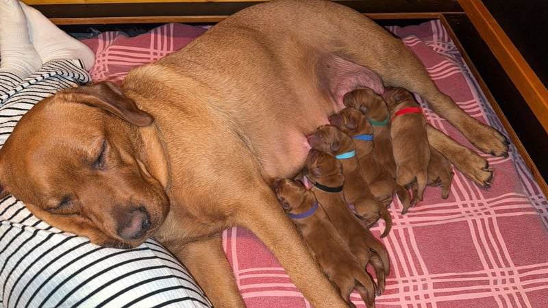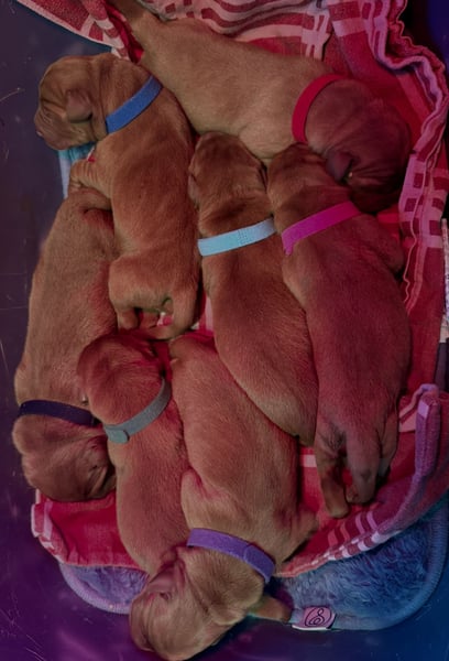 Am 05.11.2025 erblickten sieben süße foxred Labrador Welpen das Licht der Welt.