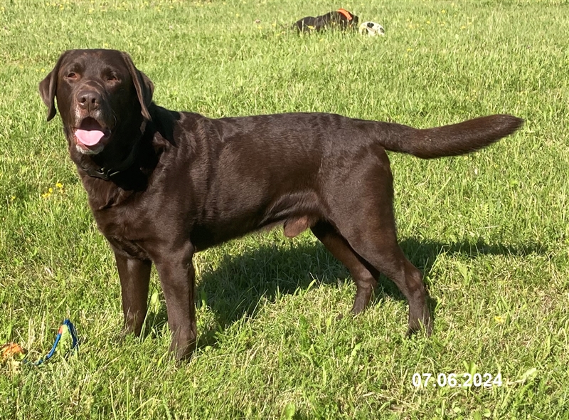 Labrador Deckrüde mit ZZL, decksicher, reinerbig braun chocolate nach FCI Standard, kein Verkauf!