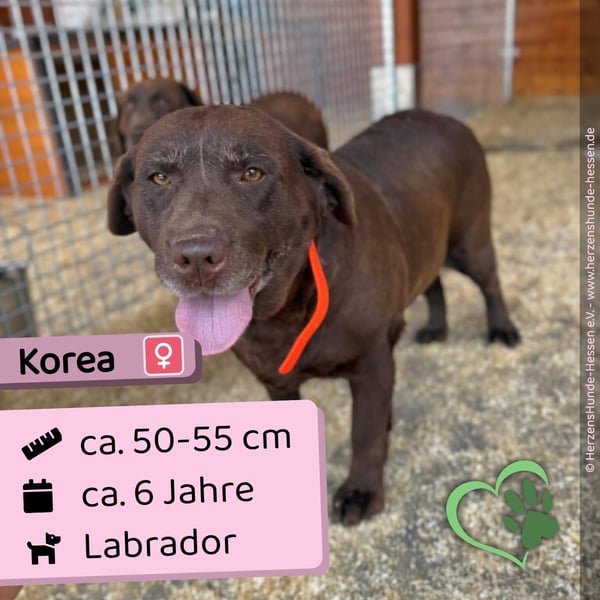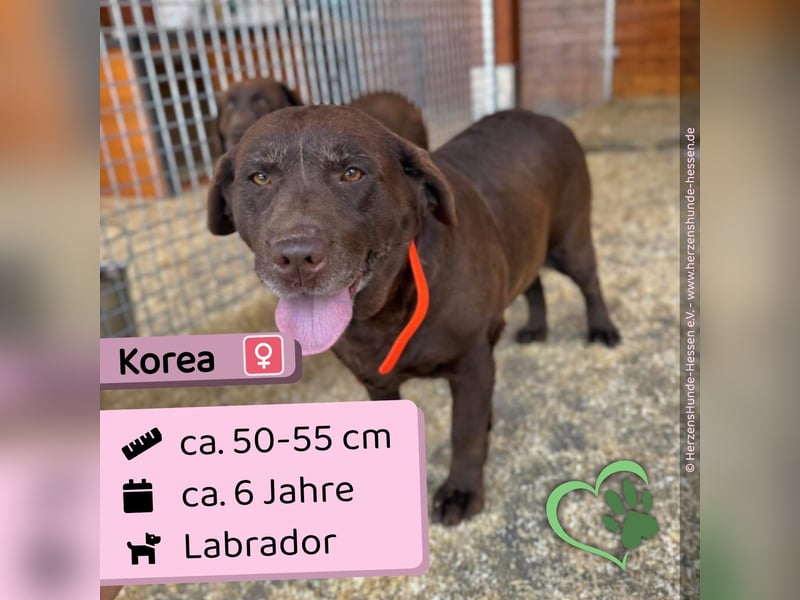 Korea ist ein typischer Labrador. Freundlich, aufgeschlossen und lernt schnell hinzu. Ihren Platz versucht sie bereits sauber zu halten. Mit anderen Hunden kommt sie gut zurecht.
