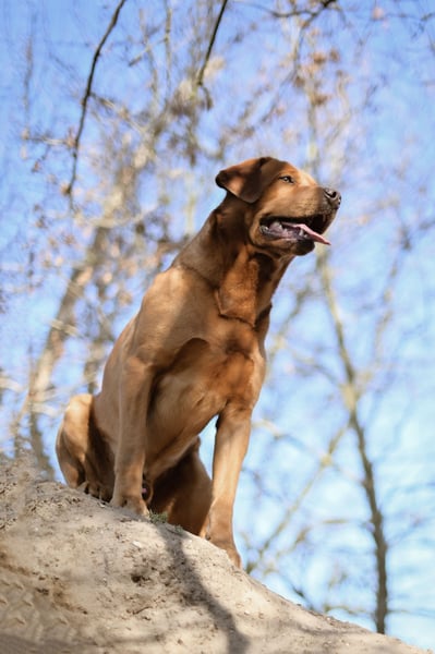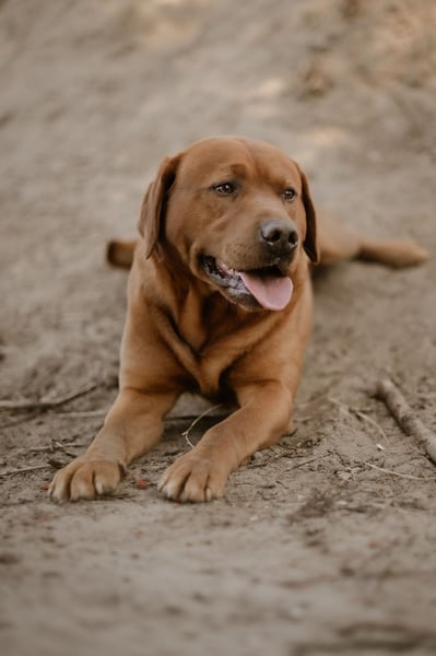 Unser reinrassiger Labrador Rüde Rex in dunklem Foxred ist ein junger Mann mit einem traumhaften Charakter.