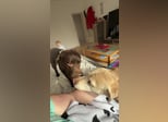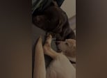 Die beiden lieben Kinder und sind stubenrein , an der Leine ziehen sie leider weshalb man schon Kraft haben sollte zumindestens bei dem Dunkeln ( Buddy) nicht kastriert)