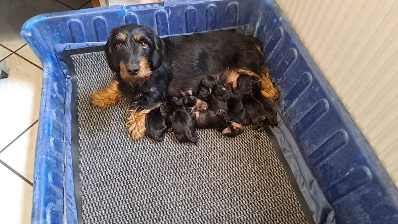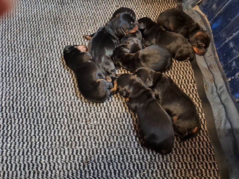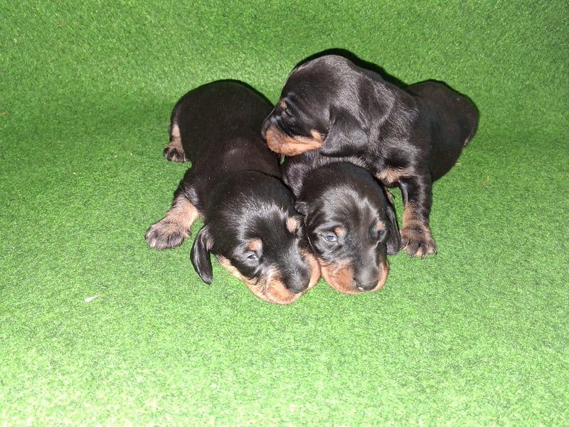 Unsere Cora hat am 19.03. wunderschöne reinrassige Rauhaarteckel Standard zur Welt gebracht. Die Welpen sind schwarz rot und dunkel saufarben. Die Welpen sind bei ihrer Abgabe geimpft, gechipt und entwurmt, sie erhalten eine Ahnentafel vom Deutschen Teckelklub. Beide Eltern werden jagdlich geführt und haben viele jagdliche Prüfungen. Die Welpen wachsen mit Kindern und anderen Tieren auf. Gerne geben wir die Welpen auch an Liebhaber ab. Bei uns sind beide Elterntiere vor Ort und die Welpen können immer besucht werden.