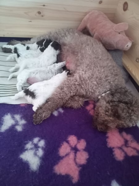 Die Hundekinder leben mit uns im Haushalt und sind an alle ueblichen Geräusche im Haushalt und an viele Besucher gewöhnt. Die Mutterhündin ist ausgesprochen entspannt. Der Welpe wird ähnlich wie die Mutterhündin später aussehen: Braunschimmel. Wir sind Mitglied im Verein Lagotto Romagnolo Züchtergemeinschaft e.V. und züchten nach VDV und FCI Regeln.