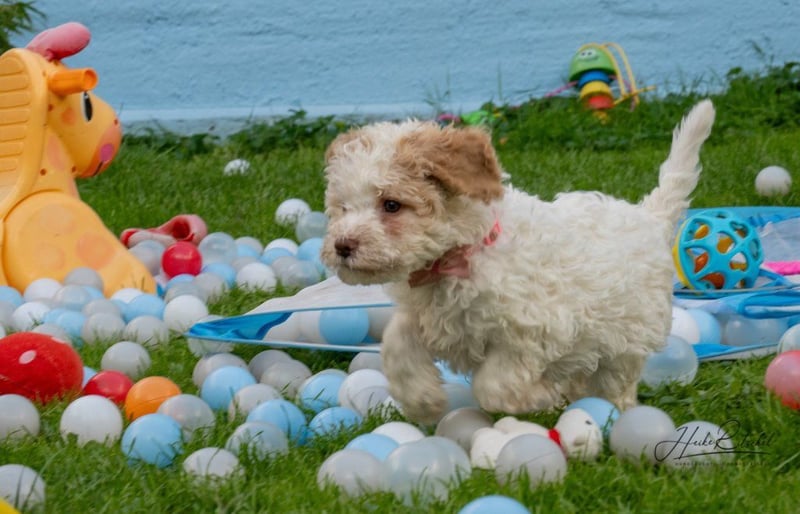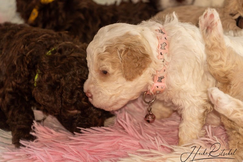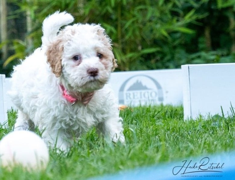 Welpe, 9 Wochen,Hündin , Farbe weiss-organge CANE D'ACQUA Malu